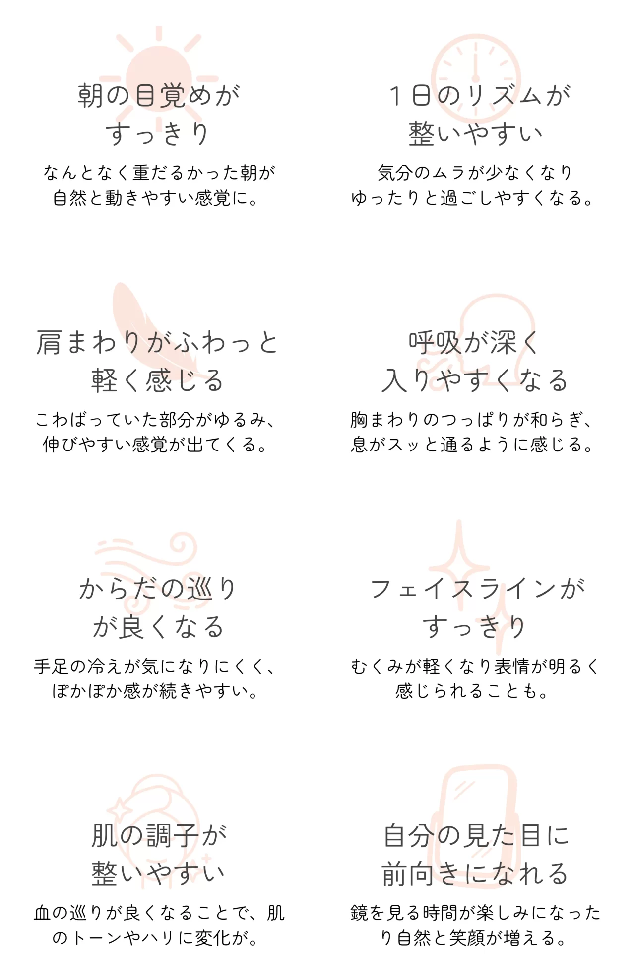 めぐりが整いやすくなることで、身体全体の